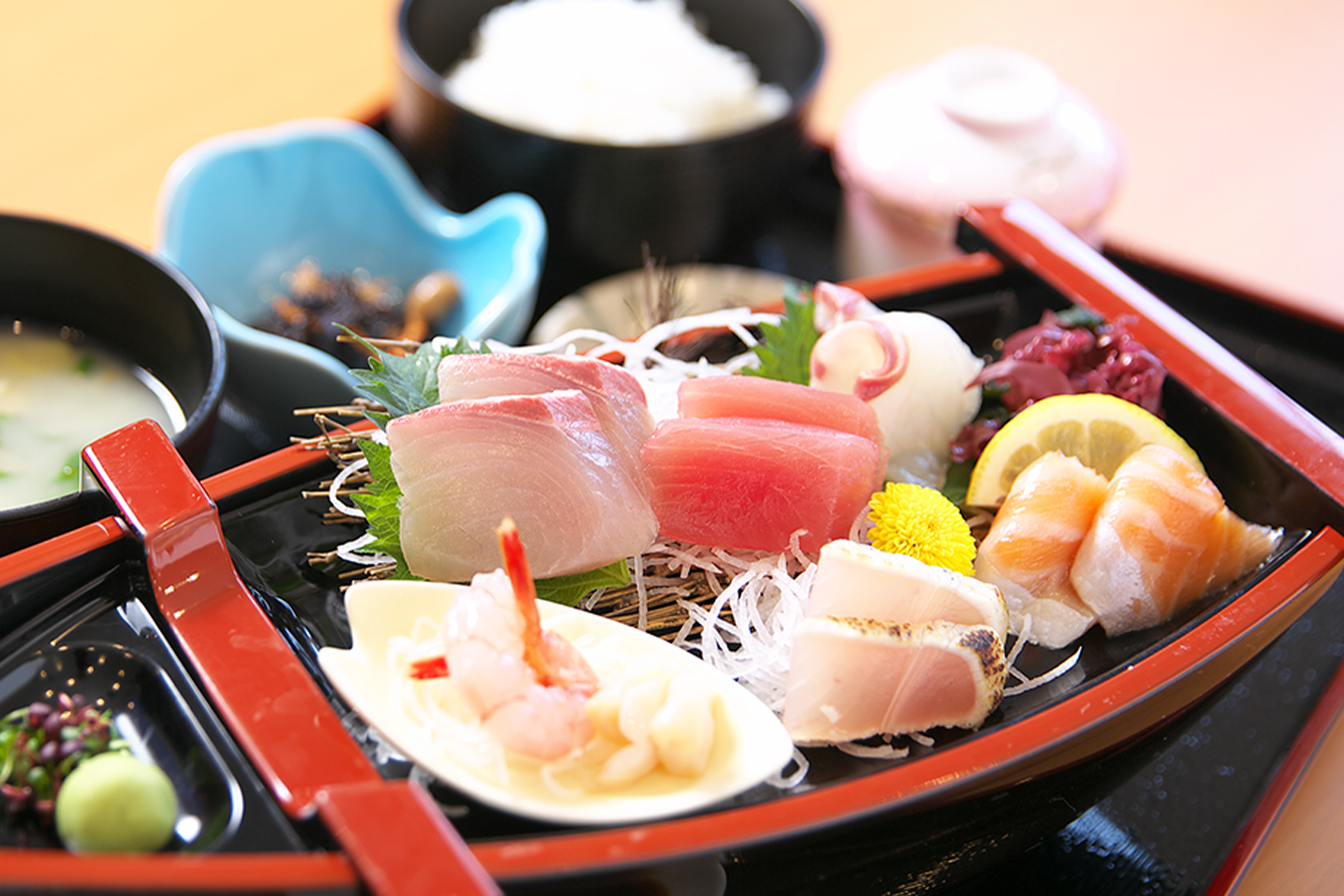 海鮮刺し御膳・・海鮮船盛、小鉢、茶碗蒸し、御飯、汁物、香の物付き