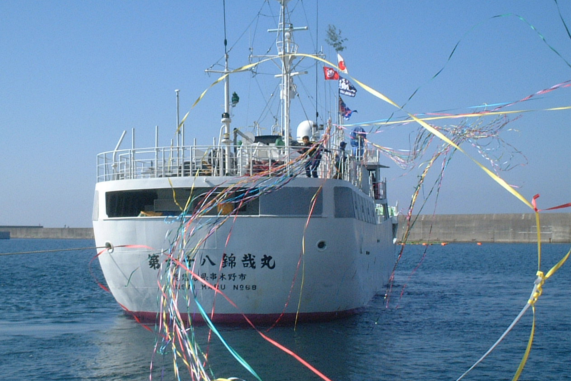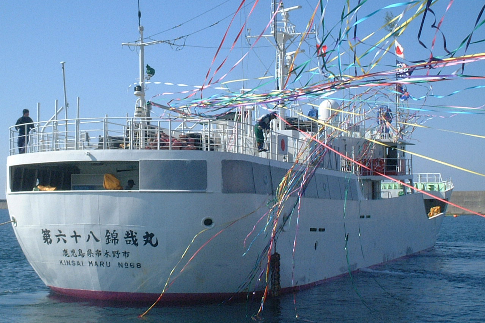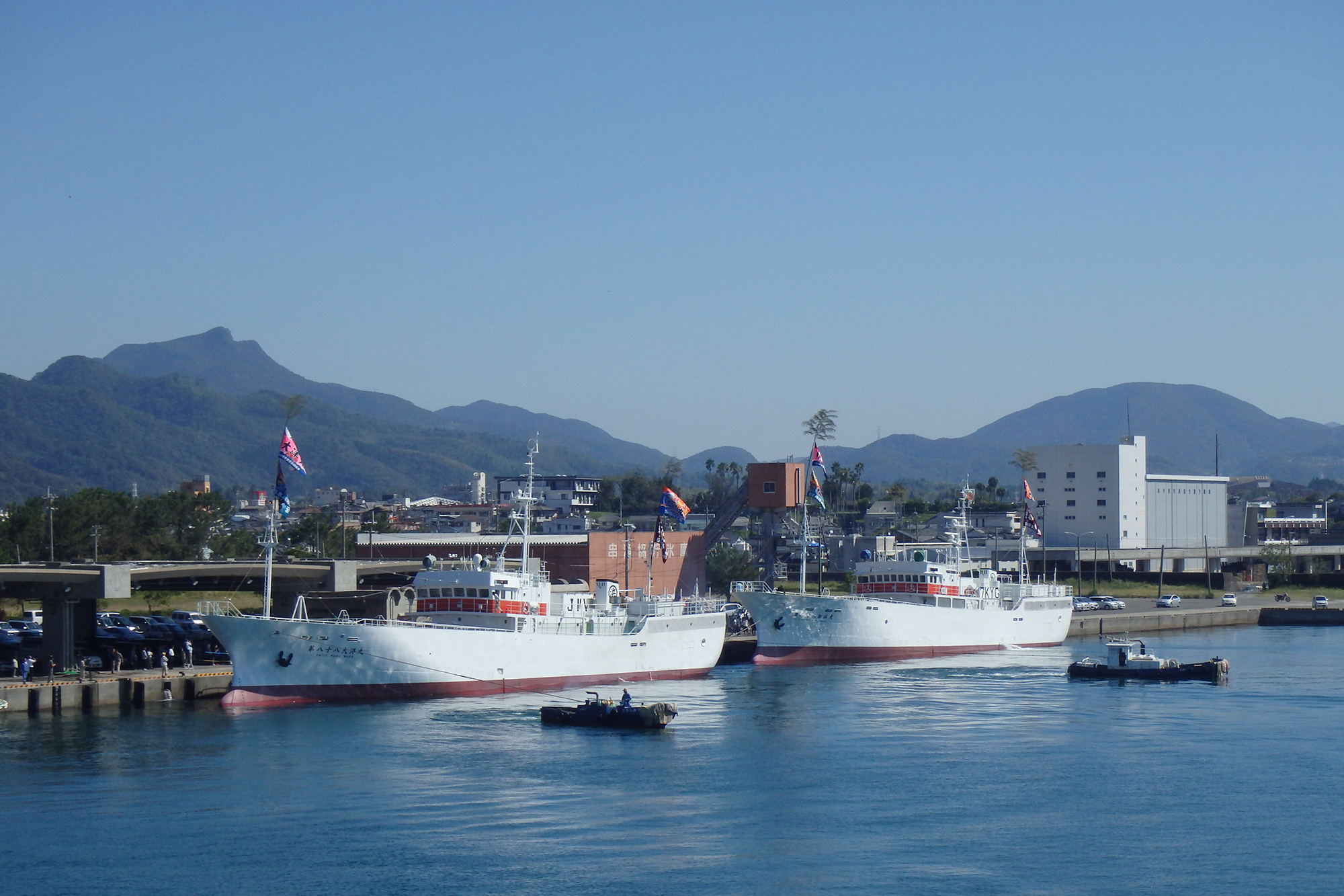 係留している漁船は途中運搬船やコンテナにマグロを積み替えて、再び漁場へ向かいます。